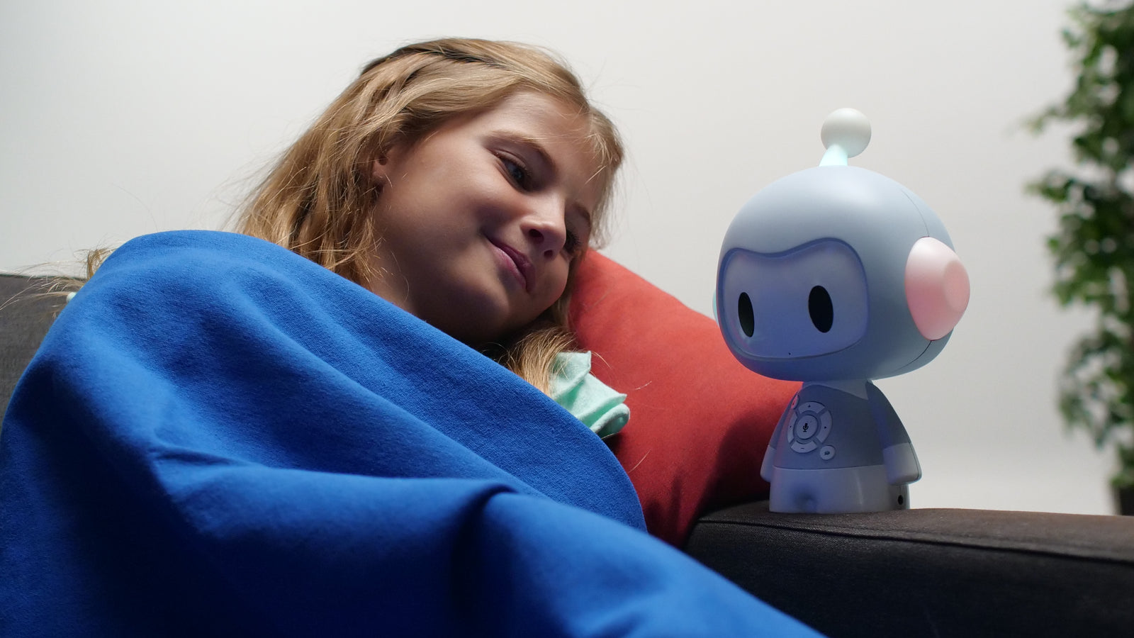 Interacts using voice and buttons to avoid the potential negative effects of screen time.